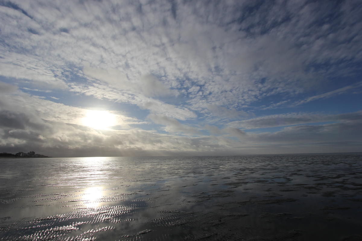 Zum Wachwerden laufen wir unsere Standardrunde. Weiter geht’s mit einem ausgedehnten Frühstück. Danach ziehen wir die Gummistiefel an und gehen ein paar Meter durch’s Watt. Wieder daheim bäckt Cordula und ich arbeite an den Einladungen zu meinem Geburtstag. Nebenbei werden noch die Tickets für Helgoland am Mittwoch gebucht. Zum Abendessen gibt es Blauleng mit Champignons.