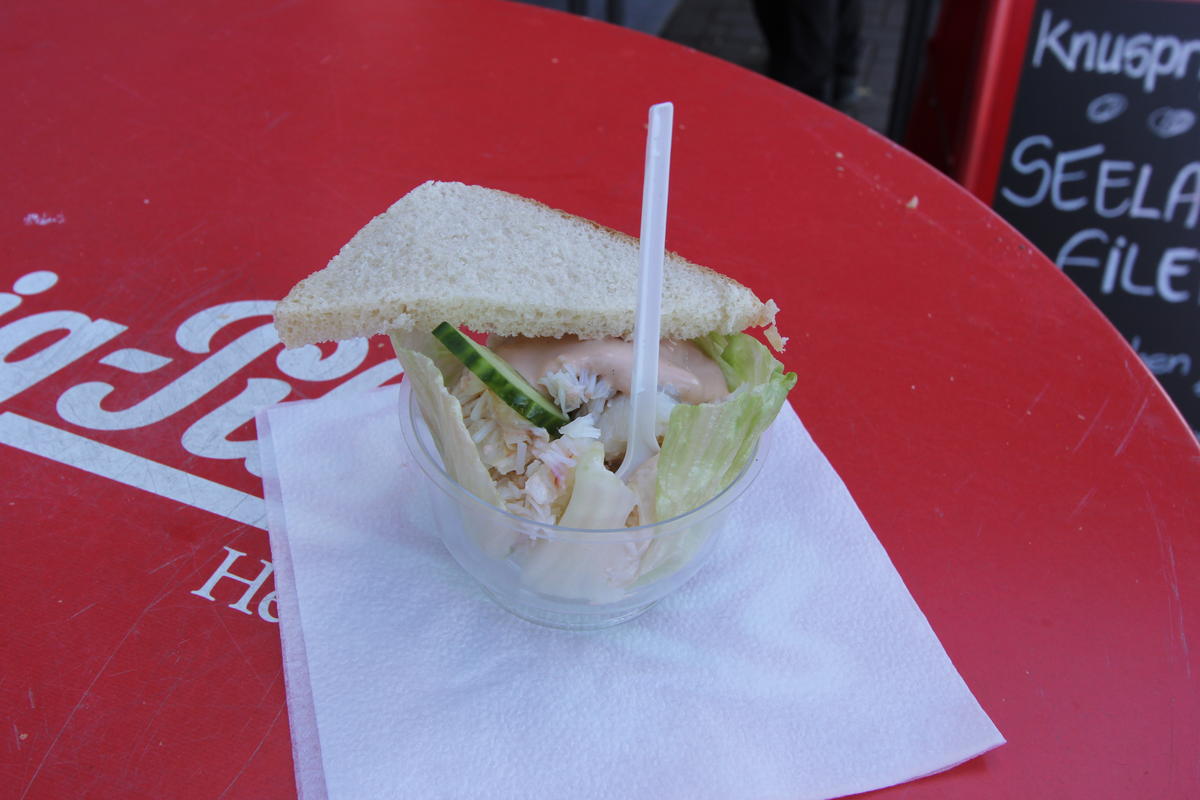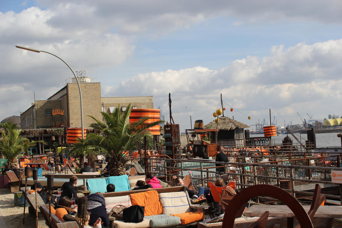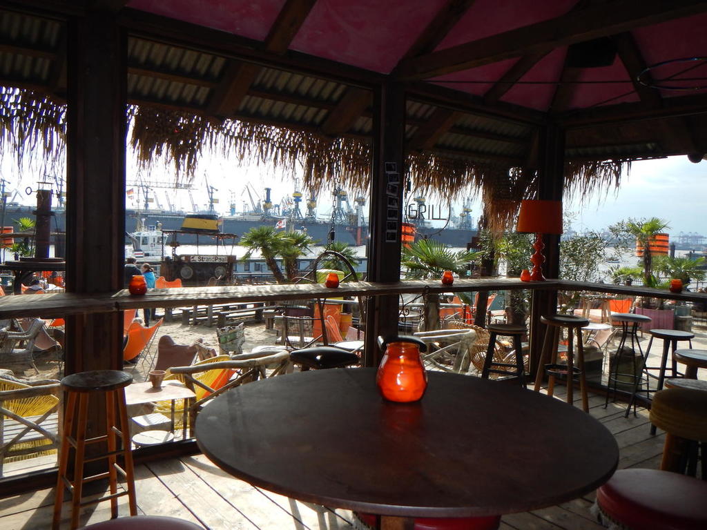 Wie erhofft und erwartet ist das Wetter wieder schön. Wir packen das Frühstück in den Rucksack und starten mit den Rädern um 8:30 Uhr Richtung Bahnhof. Tickets ziehen, einsteigen, losfahren. Wir gönnen uns ein schönes Sektfrühstück und freuen uns darüber, dass die Sonne scheint. Das macht sie auch noch in Hamburg, als wir von den Landungsbrücken mit der HVV-Linie 72 (einer Fähre) durch den Hafen fahren. Wir fahren bis zum Ende und zurück und steigen dann in die Linie 63, die uns nach Finkenwerder und zurück bringt. Auf dem Rückweg steigen wir bei einem Büro-/Kongresshaus (?) aus und genießen von oben den Blick auf die Stadt. Wir fahren noch eine Station weiter und steigen beim Fischmarkt aus. Von dort aus laufen wir ein paar Meter die Elbe entlang bis zur Beachbar Strand Pauli. Wir finden einen Platz auf einem Sofa und genehmigen uns einen Cocktail. Während wir diesen schlürfen verzieht sich die Sonne, aber es bleibt noch trocken. Anschließend laufen wir zu unseren Rädern und wollen Richtung Stadtmitte zum Shoppen aufbrechen, doch nach 50m ist Schluss: mein Hinterreifen ist platt. Ich hab mir einen spitzen Stein reingefahren. Also suchen wir einen Fahrradladen und fahren mit der S-Bahn dorthin. Der Verkäufer wirkt anfangs unfreundlich ist dann aber doch ganz hilfsbereit. Wir kaufen Flickzeug und einen neuen Mantel. Repariert wird vor dem Fahrradladen. Cordula dokumentiert alles in einer Fotoreportage. Danach können wir uns endlich um das echte Shoppen kümmern. In der Europapassage besorgen wir uns einen Myanmar-Reiseführer, holen uns einen Kaffee bei McDonald’s und versinken anschließend in den Tiefen des Hollister-Shops. Weiter kommen wir nicht, denn es ist mittlerweile 18:30 Uhr und für 19:00 Uhr haben wir einen Platz in den Alt Helgoländer Fischerstuben reserviert. Wir gönnen uns ein leckeres Viergängemenü und sehen, wie es leicht regnet. Pünktlich nach der Nachspeise hört es auf zu regnen und wir machen auf dem Rückweg zum Bahnhof noch einen Stop auf der Reeperbahn. Der Weg zum Bahnhof ist länger als erwartet (20min statt 10-12min) und wir radeln fast ein bisschen zu gemütlich. Glücklicherweise ist das Abfahrtsgleis auf unserer Seite und wir steigen um 22:05:40 in den Zug ein, der um 22:06 abfährt. Puh, das war eng. Total müde fallen wir um 0:45 Uhr ins Bett.