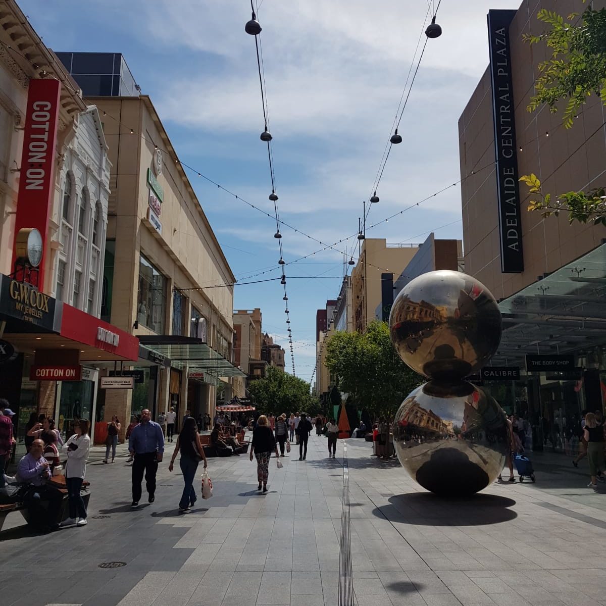 Die Nacht war ok, aber Schlaf fehlt uns allen noch. Cordula ist am fittesten. Bis wir aufgestanden sind und uns gerichtet haben, ist es kurz vor 12.00. Wir laufen knapp 500 m bis zur Bushaltestelle und fahren ca. 30 min bis in die Innenstadt. Dort suchen wir zuerst etwas zu essen, da wir noch nicht gefrühstückt haben. Fündig werden wir bei einem Inder in der Mall. Anschließend schlendern wir plan- und ziellos durch Adelaide. Zu verpassen gibt es ja nichts, da Adelaide keine großartigen Sehenswürdigkeiten zu bieten hat – zumindest für uns nicht. Nachmittags steuern wir einen Supermarkt in der Rundle Mall an und kaufen das Nötigste für den Abend und den nächsten Tag. In der Mall ist dann eine Wickelaktion fällig, die sich zu einem Picknick ausdehnt, da die Wickelräume in Australien regelrechte Wickelwohnungen sind. Ruhe hat man trotzdem keine, denn der Fernseher zeigt einen Comicfilm in (fast) voller Lautstärke. Lorena gefällt’s logischerweise und sie isst und trinkt nebenbei mehr als sonst, was ihr wirklich guttut. Weiter geht es mit der King William Road und den Überlegungen, wie und wann wir nach Kangaroo Island kommen. Während Cordula mit Lorena wieder wickeln geht, recherchiere ich mehr oder weniger erfolgreich. Gebucht haben wir nichts, aber wir haben rausgefunden, dass die Fähren nach Kangaroo Island zu den für uns günstigen Zeiten ausgebucht sind und dass wir für die Buchung anrufen müssen. Eine Buchung über Direct Ferries erscheint uns (zum Glück) zu unzuverlässig. Um 18.30 gehen wir zu Guzman y Gomez mexikanisch essen. Sehr lecker und reichlich. Lorena schmecken vor allem die (gut gesalzenen und gewürzten) Pommes. Um 20.30 fahren wir mit dem Bus wieder zurück zum Hotel. Beide Kinder schlafen auf dem Heimweg ein. Im Hotel verfrachteten wir beide ins Bett und legen uns auch hin.