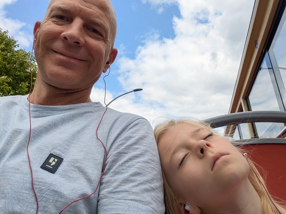 Der Kinder-Audio-Guide gefällt den Kinder und „trägt“ sie nach oben und wieder runter. Beide sind berechtigterweise schon ziemlich K.O..