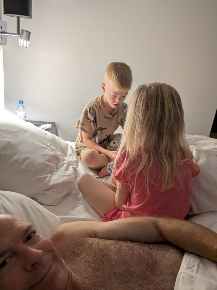 Zurück im Hotel versuchen wir die Kinder ins Bett zu bringen.