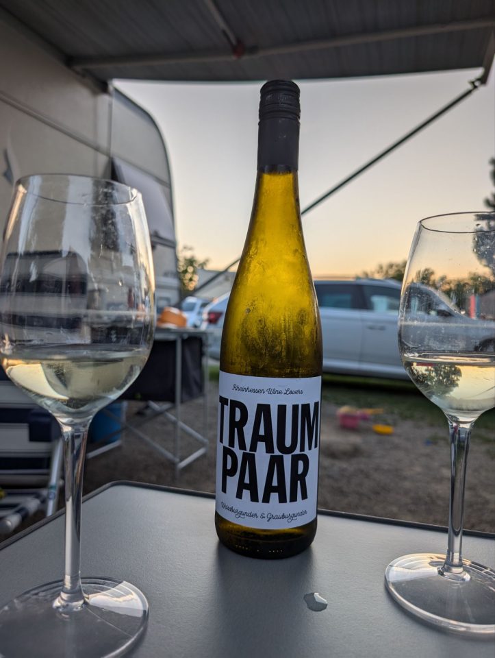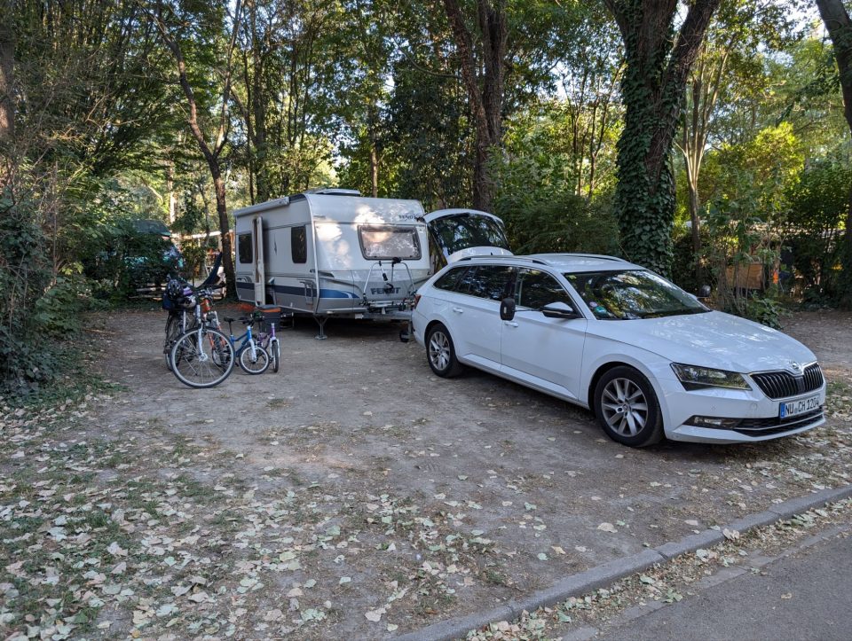 Als die Kinderdisco um 21:10 Uhr endet, will Samuel nach Hause. Also radeln er und ich zurück, während Cordula und Lorena noch bleiben und sich „Mom versus Dad“ anschauen. Zuhause trinkt Samuel erst einmal viel – dann will er überraschenderweise wieder zurück. Ich überrede ihn, im Wohnwagen zu bleiben. Wir lesen noch ein wenig, und er schläft relativ schnell ein.