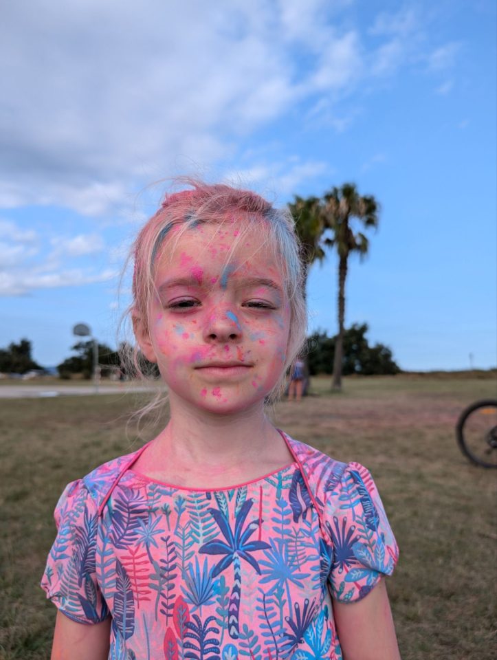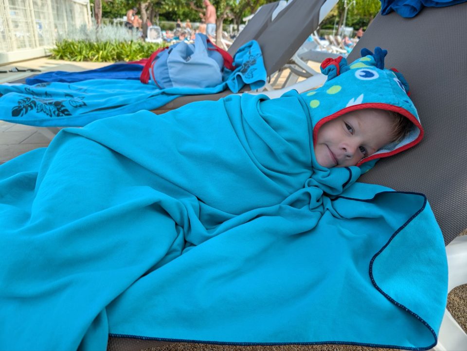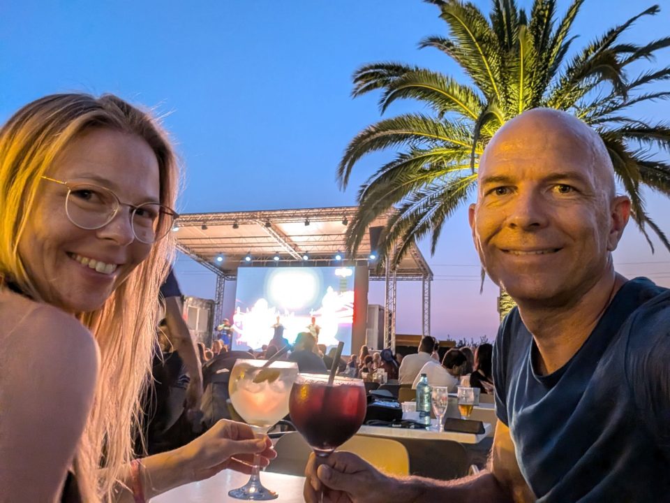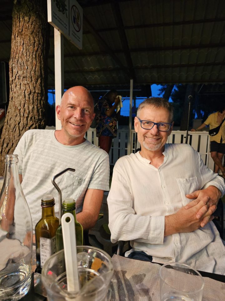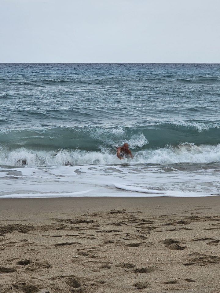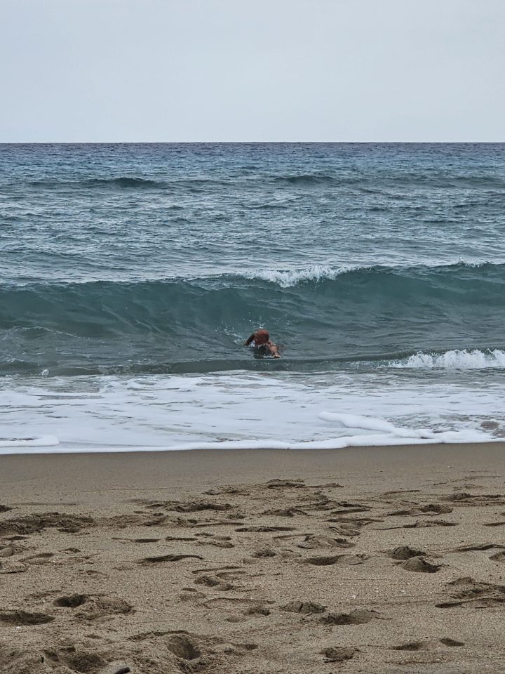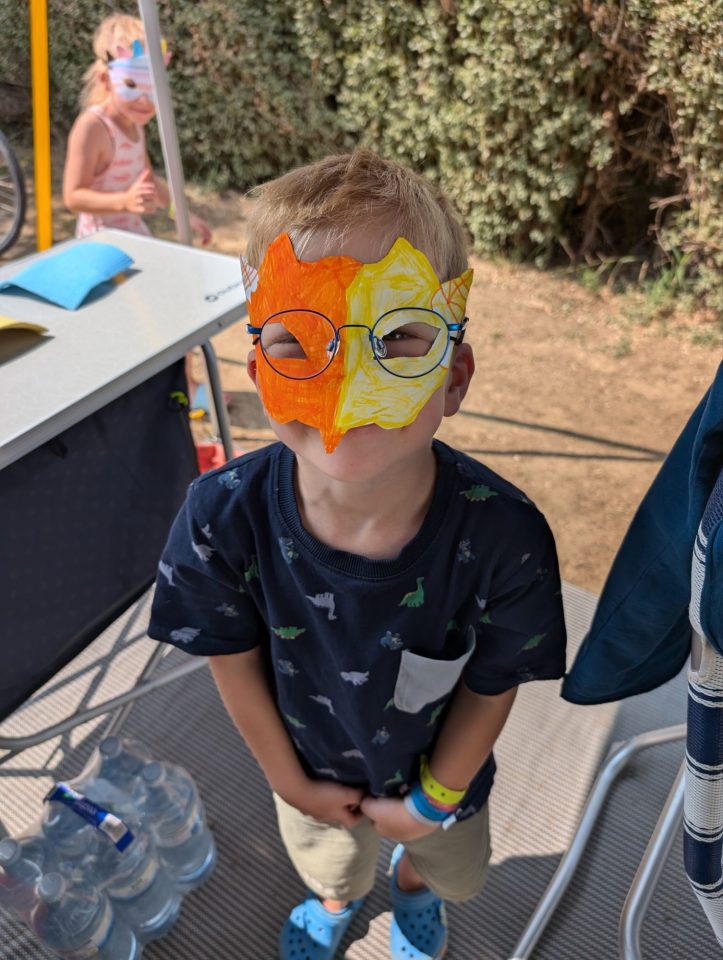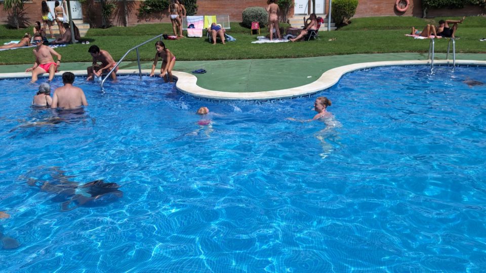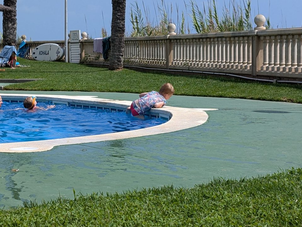 Dann übernehmen wir wieder und führen die Kinder zu einer Eisdiele. Samuel ist ganz flott, Lorena zelebriert ihre eine Kugel für 4€ wieder einmal und braucht knapp 20 min bis sie fertig ist. Jetzt aber schnell zurück zum Auto, denn es ist inzwischen kurz vor 18.00 und bis zum angepeilten Campingplatz Albera, der um 19.30 schließt, haben wir noch 50 min Fahrt vor uns. Lorena und Samuel machen super mit und wir kommen um 18.15 in Girona los. Der Stopp hat sich auf jeden Fall gelohnt. Zum Glück kommen wir ohne Stau durch und erreichen den etwas abgeschieden gelegenen Campingplatz kurz nach 19.00. Wir suchen uns einen Stellplatz (es ist wenig los und es gibt genügend Plätze) und während ich alles auspacke und aufbaue, geht Cordula noch kurz eine Runde schwimmen mit Lorena und Samuel. Das tut den beiden gut. Um kurz nach 20.00 kommen sie zurück und wir essen mit Einbruch der Dunkelheit. Als wir fertig sind, entdeckt Samuel sogar noch einen Satellit am klaren Nachthimmel. Im Bett liegend braucht Samuel noch kurz bis er runterkommt. Um 22.00 schlafen die Beiden.